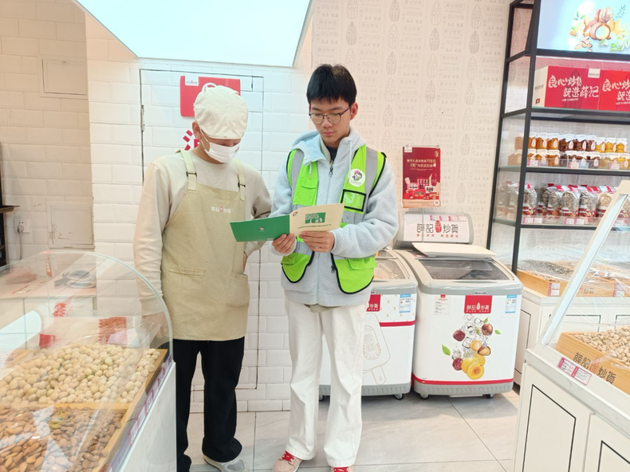 青少年们怀揣着好奇与期待走进派出所,在“蜀黍”的带领来到装备展示区与接警大厅,从防暴盾牌、警棍、手铐等警用装备使用,到接警流程的现场演示,无不展现出警察工作的专业与高效,让孩子们深刻体会到警察为维护社会稳定、保障人民安全所付出的辛勤努力。 三、青春助力“分”享文明 近日,街道办事处组织开展大学生志愿者垃圾分类进商铺宣传活动。