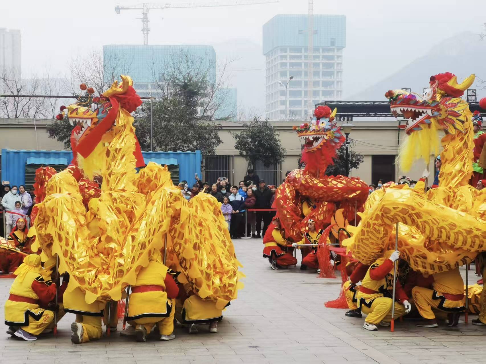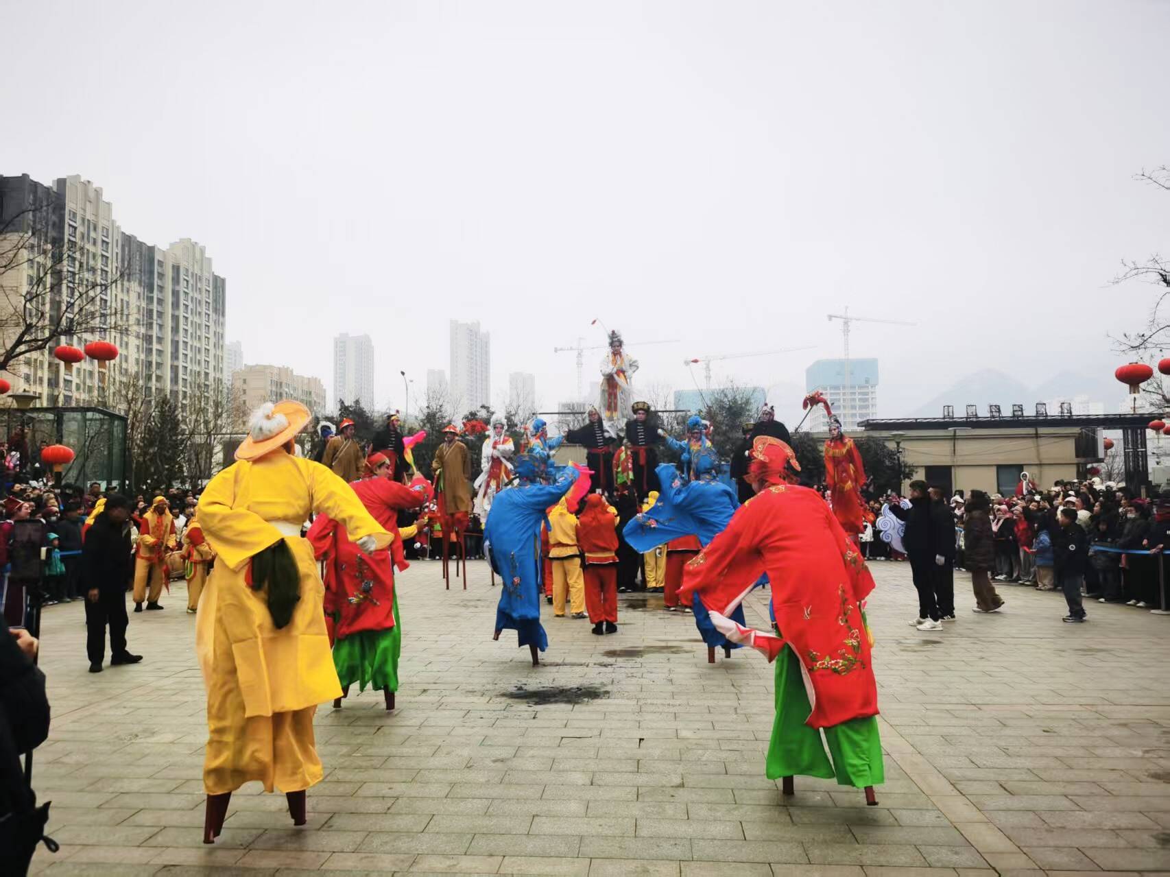 为弘扬中华优秀传统文化,丰富居民节日文化生活,营造喜庆祥和的节日氛围,2月26日,十六里河街道北康社区特邀仲宫街道二仙村民俗表演队,在社区广场举办“龙腾鼓乐闹元宵”民俗展演活动,为居民送上了一场融合了踩高跷、六龙共舞与云彩花灯展演的非遗文化盛会。
