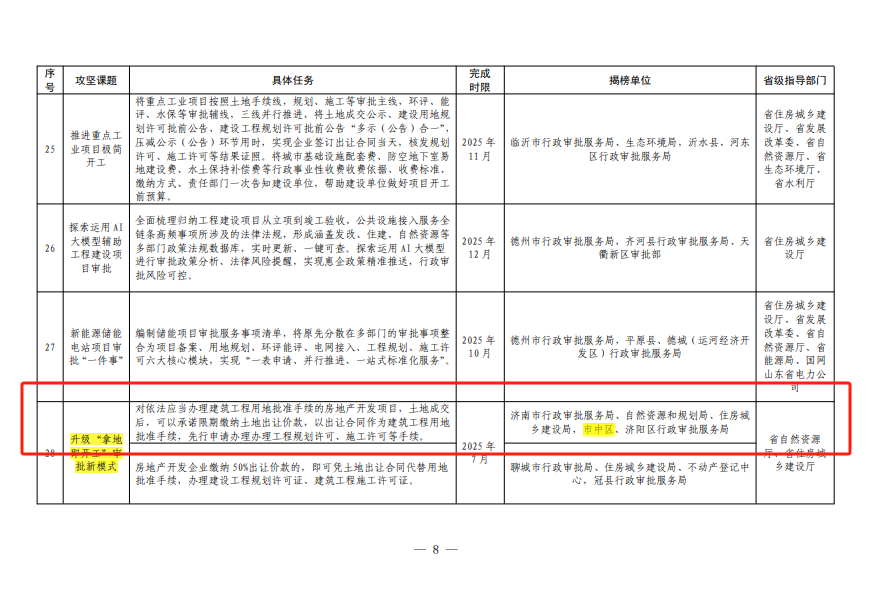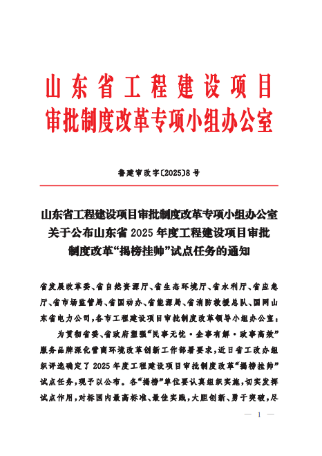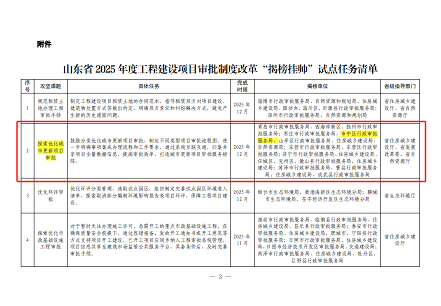 喜报!市中区3项工程建设项目审批制度改革攻坚课题入选山东省2025年度“揭榜挂帅”试点任务清单
