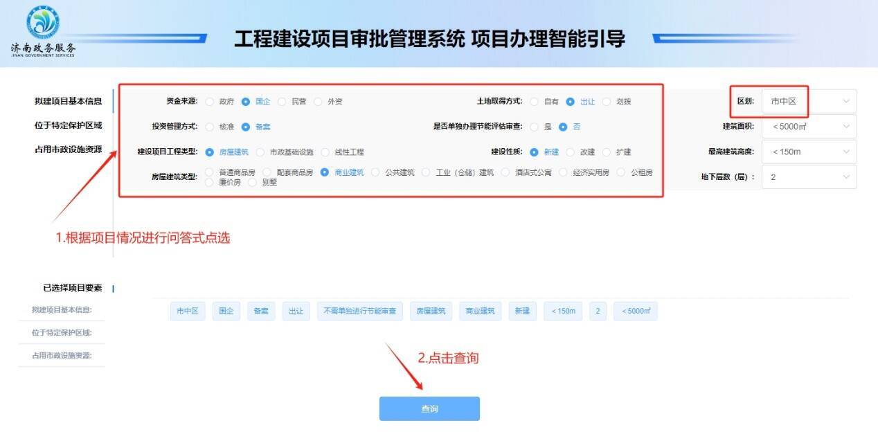 区级率先上线“智能引导”,提升企业报建便利度。积极推进数字化开工报建,在工程建设项目审批服务专区率先上线“智能引导”模块,着力解决工程建设项目涉及部门多、要件多、环节多、流程多等问题。“智能引导”模块上线后,企业仅需回答几道选择题,系统便可为其自动匹配项目从策划生成到竣工验收的全流程事项清单,生成相应工程类别流程图,智能辅助项目申报,帮助开发企业轻松完成事项申报流程,进一步提升报建便利度。