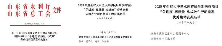 近日,山东省水利厅公布了“2025年度全省大中型水库移民后期扶持项目‘争进度 赛质量 比成效’劳动竞赛获奖名单”。其中,济南市市中区水务局提报的由市中区组织实施的新平村中央厨房净菜配餐项目获得“省级产业项目优质工程”荣誉,区水务局获得“劳动竞赛优秀集体”。