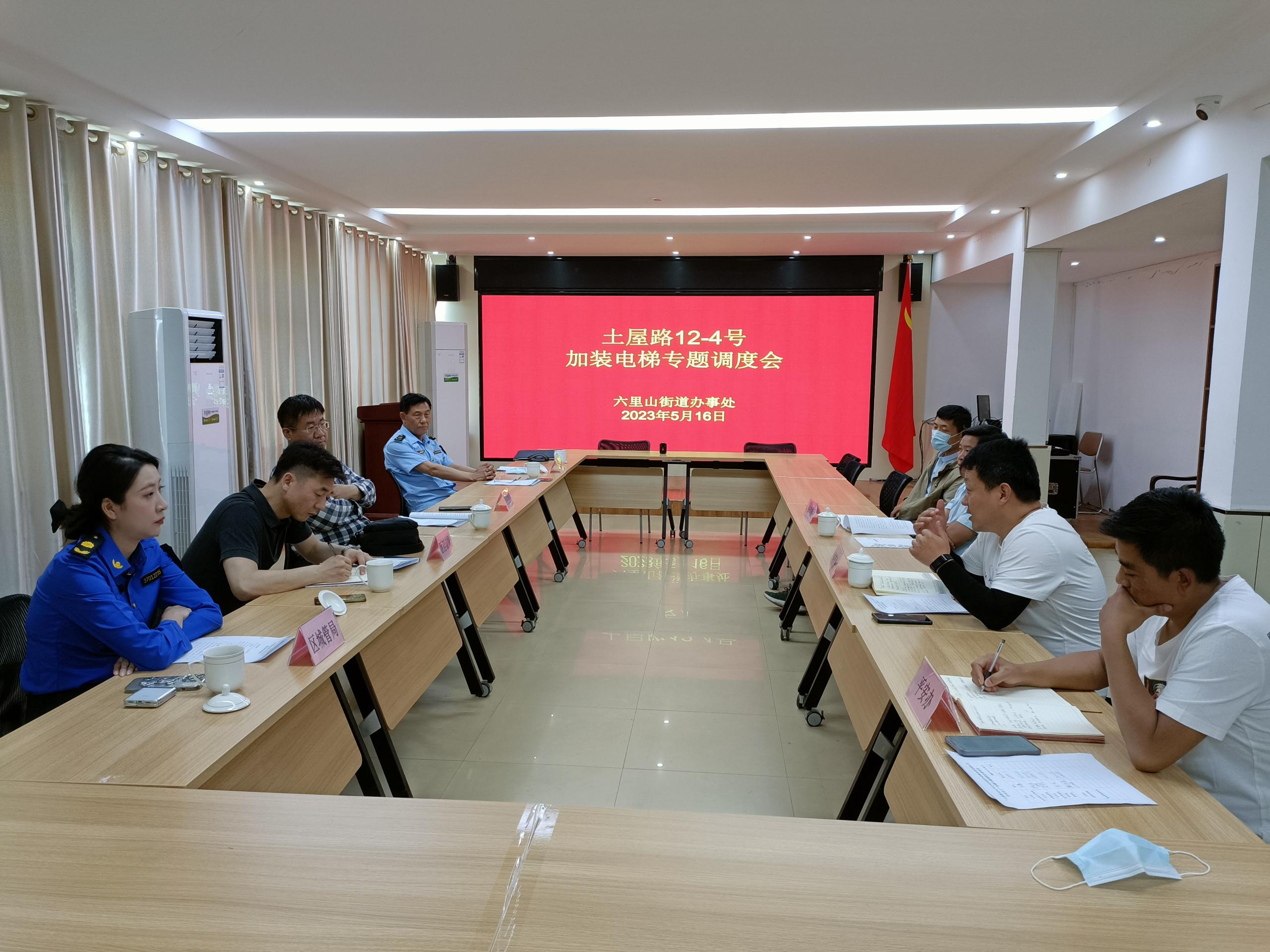 2023年5月16日下午,区局特设科在六里山街道办事处参加既有住宅加装电梯专题协调会,多部门共同协商解决土屋路12-4号小区加装电梯存在的问题,保障安全底线。